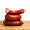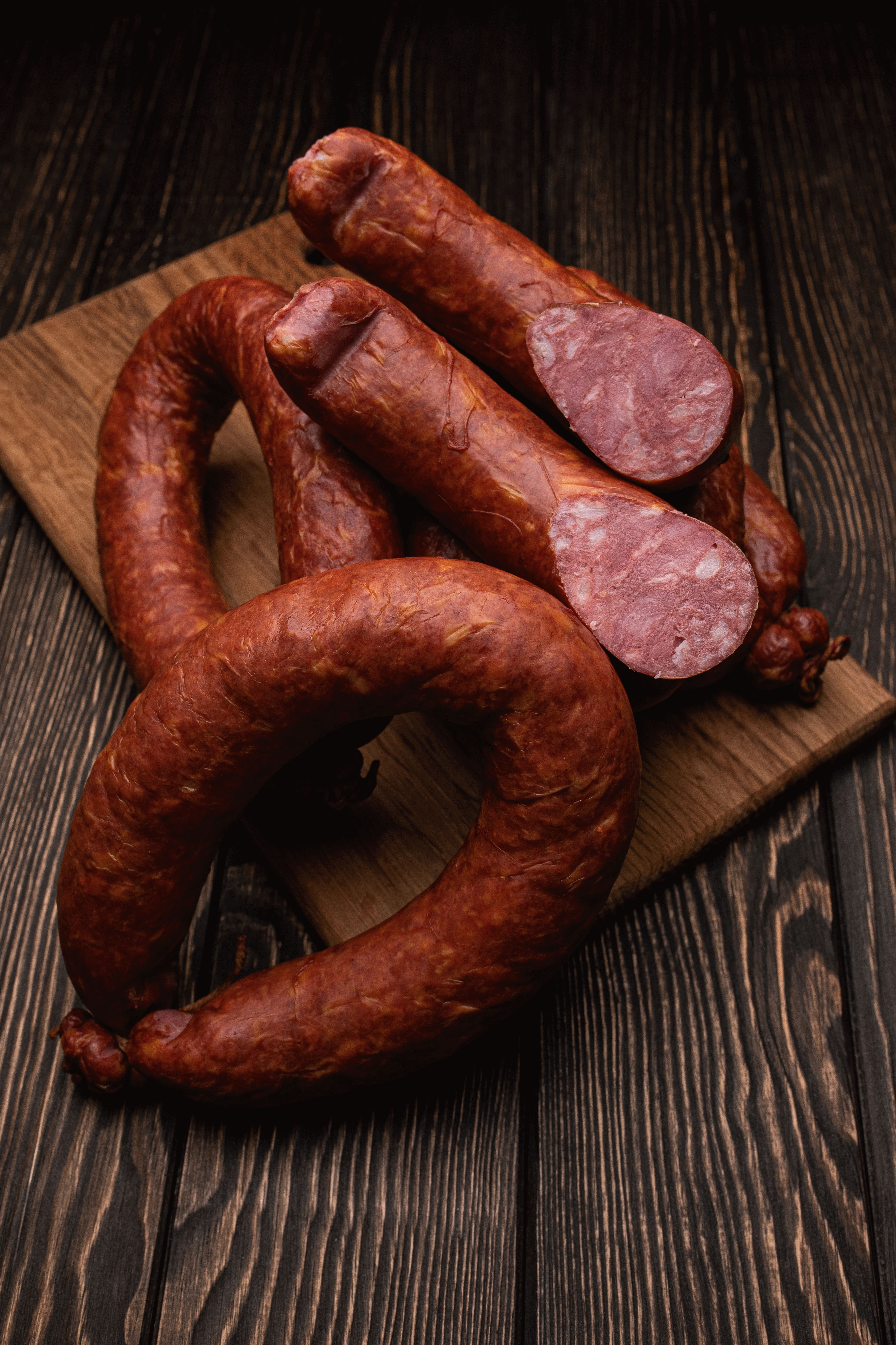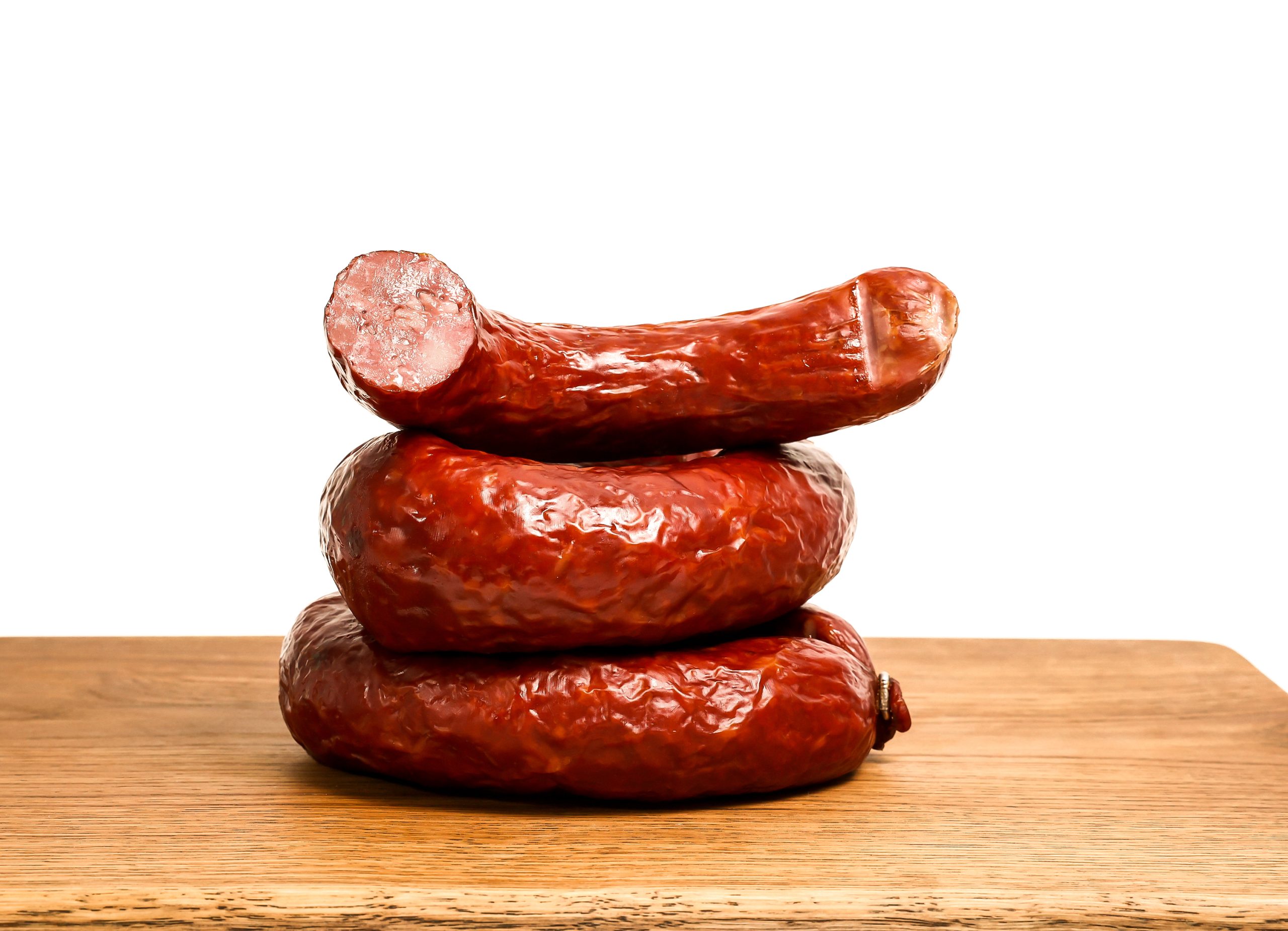 Мясной продукт, колбасы, полукопченный, категории Б, охлажденный. ГОСТ 31785-2012 Состав: свинина жилованная, шпик боковой, вода, соль поваренная пищевая, нитрит натрия, чеснок, сахар, гемоглобин, стабилизаторы – Е450, Е452, регулятор кислотности – Е451, усилитель вкуса и аромата – Е621, специи (перец белый), антиокислитель – Е301, Е300, Е316, ароматизатор мяса, экстракты специй (перец черный) красители – Е120. Пищевая ценность: 100г продукта содержит: Белок не менее – 14,0г.Жир не более – 45,0г. Энергетическая ценность: 461 кКал/ 1928,82 кДж. Упаковано под вакуум. Срок годности: при температуре воздуха от 0° до 4°С – 60 суток, после нарушения целостности упаковки – не более 3 суток не превышая общего срока годности и соблюдения условий хранения. Дату изготовления и упаковывания смотреть на упаковке.