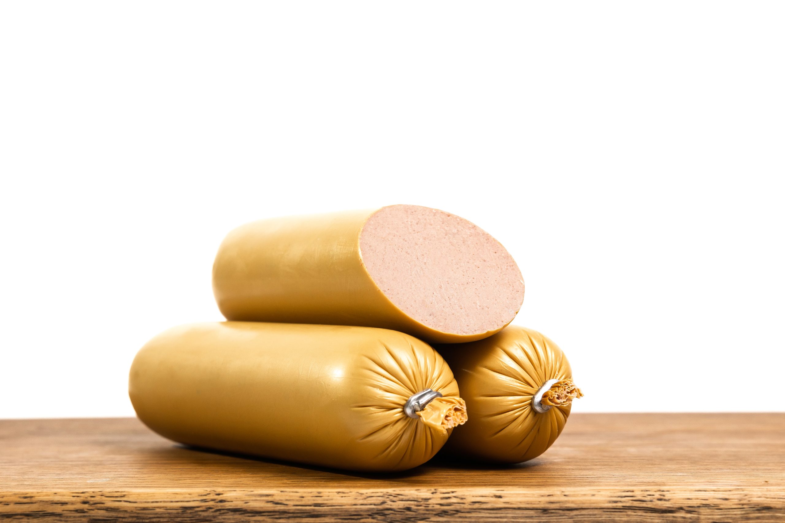 ТУ 10.13.14-132-00419779-2021.Состав: печень, шкура, шпик свиные, вода питьевая, мука пшеничная в/с, крупа манная, смесь посолочно-нитритная, пряности (с горчицей), эмульгатор – Е472, декстроза, сухой глюкозный сироп, соль поваренная пищевая, лактоза, сахар, антиокислители – Е300, Е316, ароматизаторы, усилитель вкуса и аромата – Е621, лук жареный, экстракты пряностей (перец черный, паприка, мускатный орех), животный белок (свиной), загуститель – Е412, белок соевый текстурированный, регуляторы кислотности – Е576, Е262, Е330, Е331, агент влагоудерживающий – Е325.Пищевая ценность: 100г продукта содержит:Белок, г, не менее – 9,0.Жир, г, не более – 23,0.