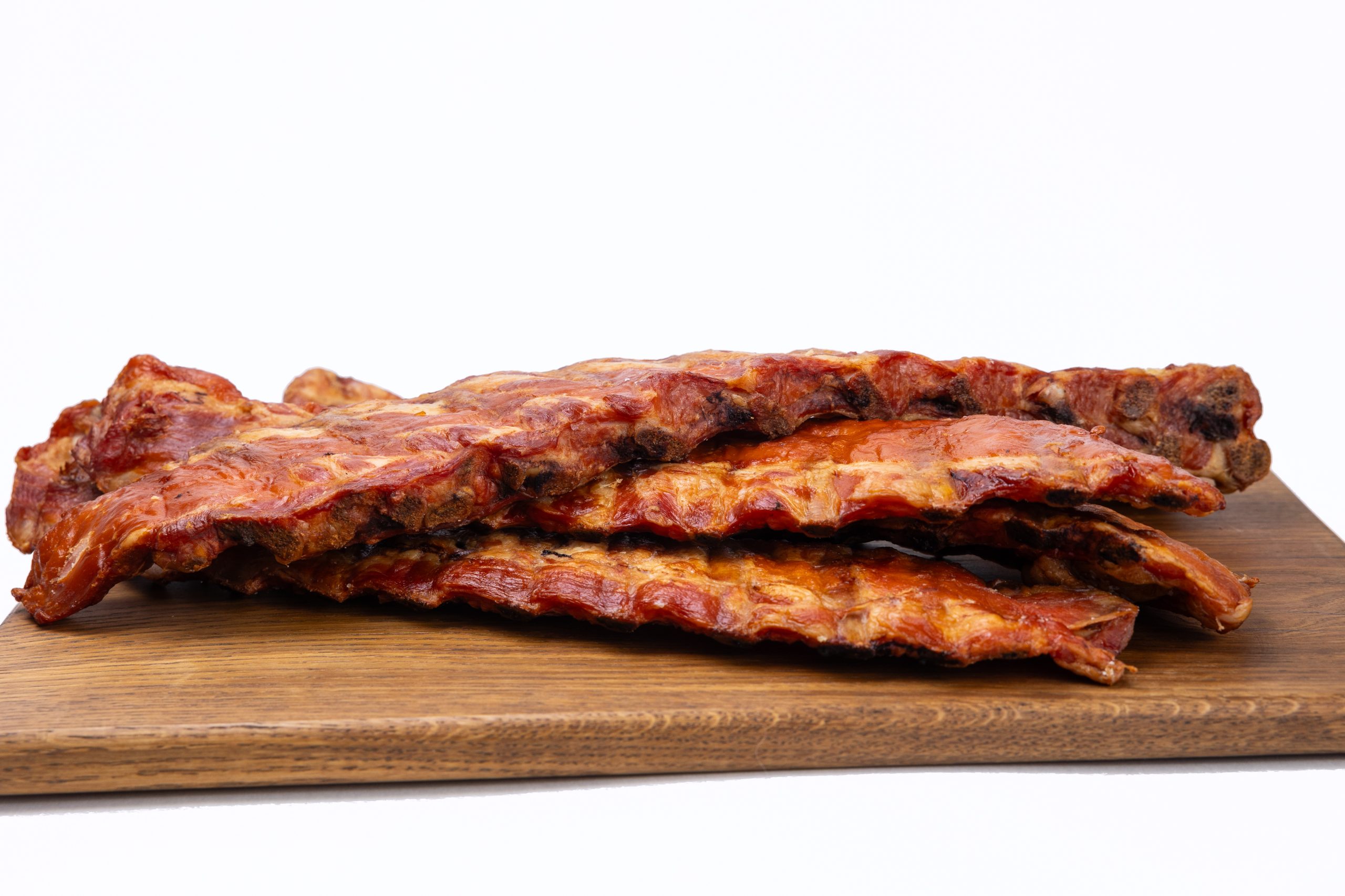 Ребрышки «Закусочные» (полоски).Мясной варено-копченный продукт из свинины категории Г, охлажденный.ТУ 10.13.14-111-00419779-2019.